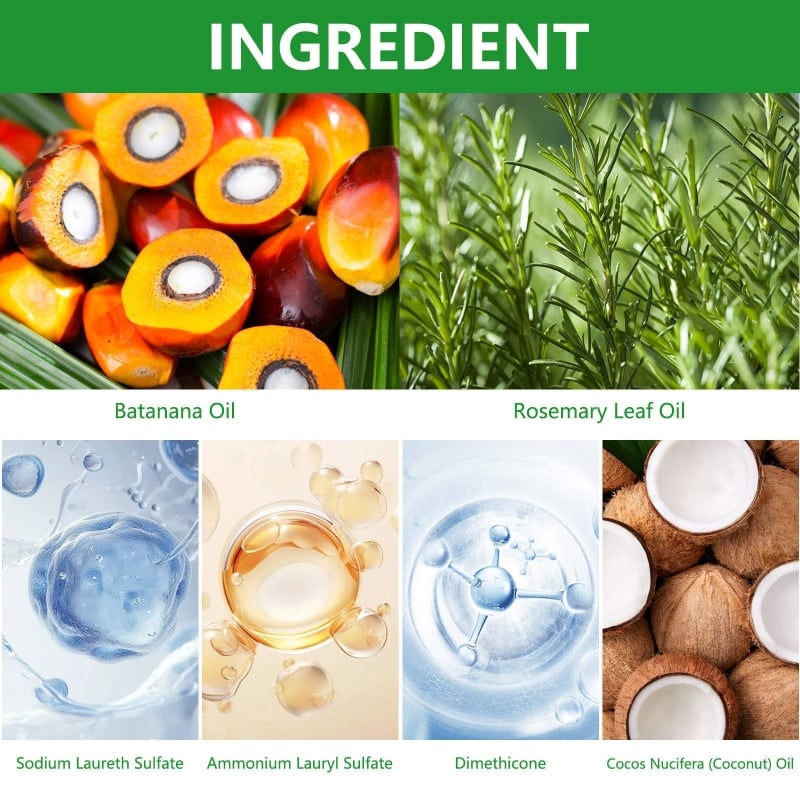 Our unique blend of Batana oil and rosemary extract offers a soothing, nourishing experience not found in typical shampoos.