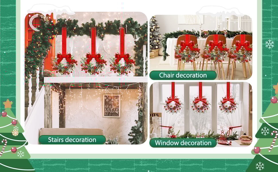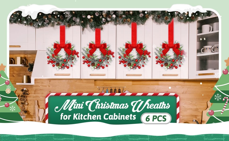 With this set of 6 mini Christmas wreaths, you can fill your kitchen, cabinets, and windows with warmth and cheer.