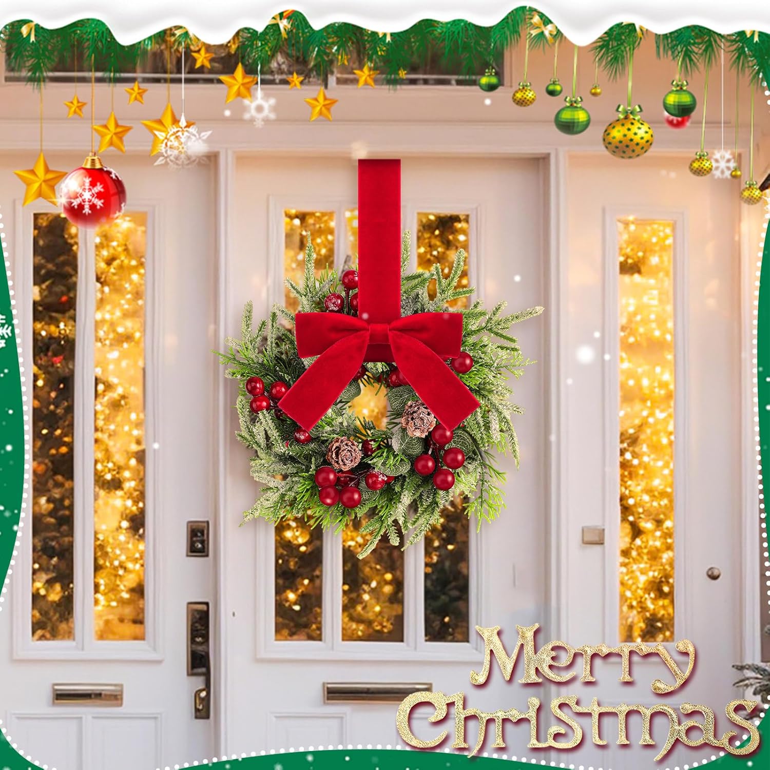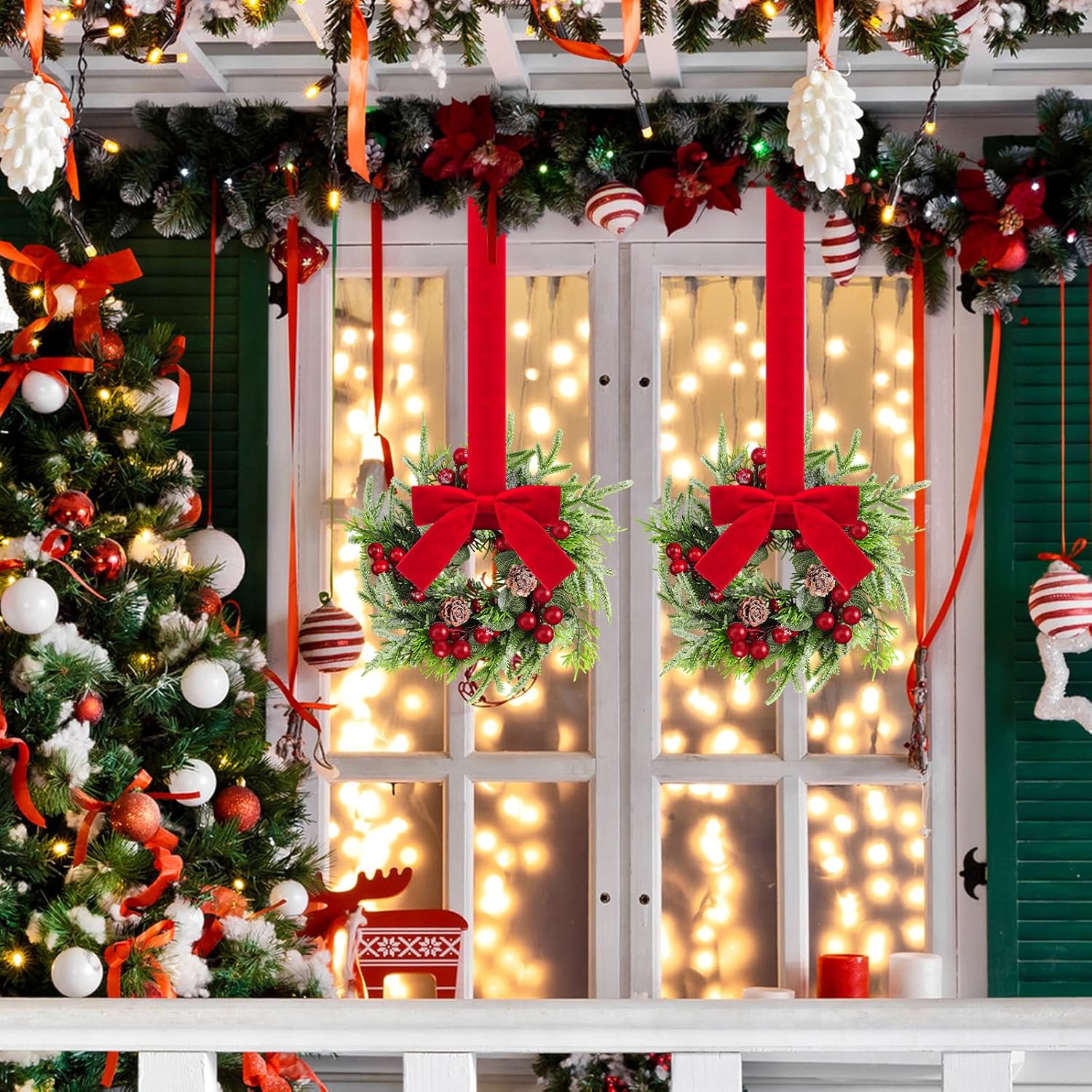 🎀🎄Mini Christmas Wreaths with Ribbon Bows & Red Berries