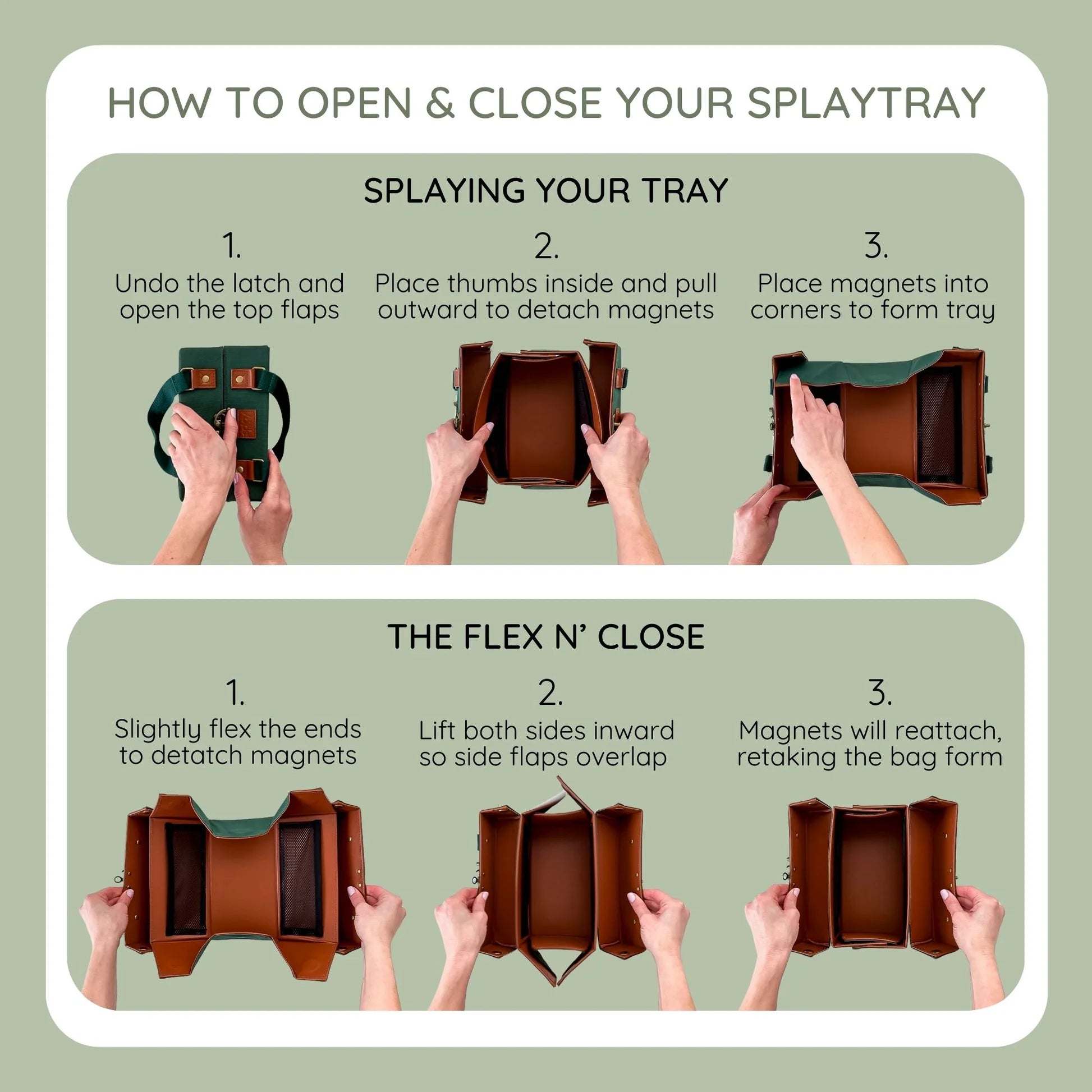 - To Convert to a Tray: When you need access to your items, simply pull gently on the sides of the bag. The magnets quickly separate, and the pouch instantly lays flat into a tray.
