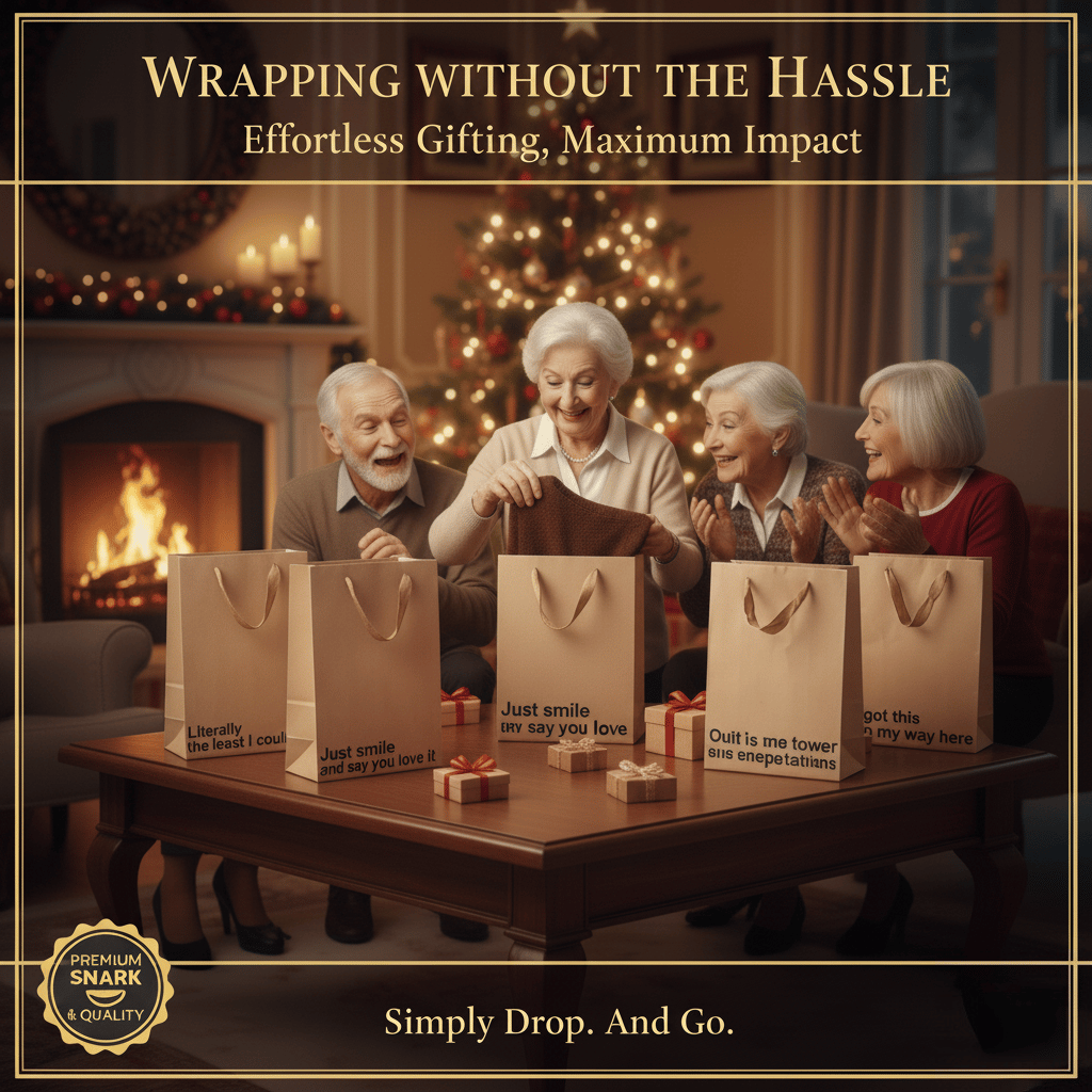 Our bags feature bold, iconic statements that cut through the fluff of holiday pleasantries. They are designed for the person who appreciates a little darkness and a lot of honesty in their gifts.These bags guarantee a genuine laugh (or gasp!) and immediately become the centerpiece of any gift exchange.