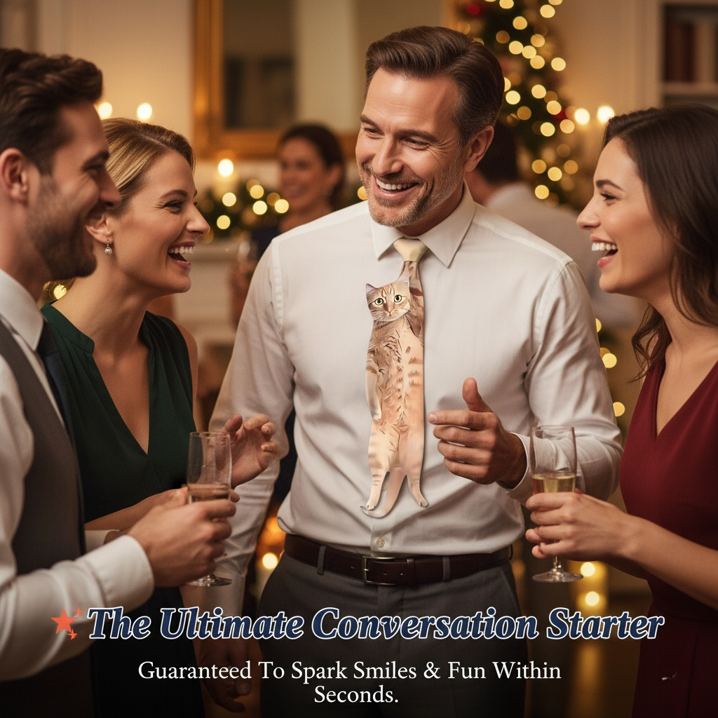 Why settle for plain stripes when you can have a hyper-realistic 3D cat perched on your chest? This isn't just a necktie—it's a fashion statement and a guaranteed ice-breaker that will have everyone at the party asking, "Where did you get that?" 🐾✨