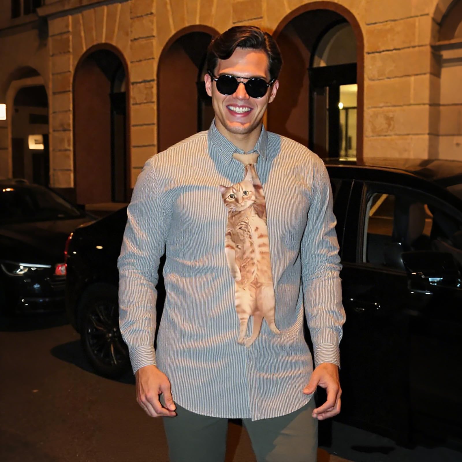 Q: Is the cat actual 3D or just a print? A: It is a high-definition realistic print specifically designed in a vertical shape to create a "3D illusion" of a cat body when worn against a dress shirt. It looks incredibly lifelike from a distance!