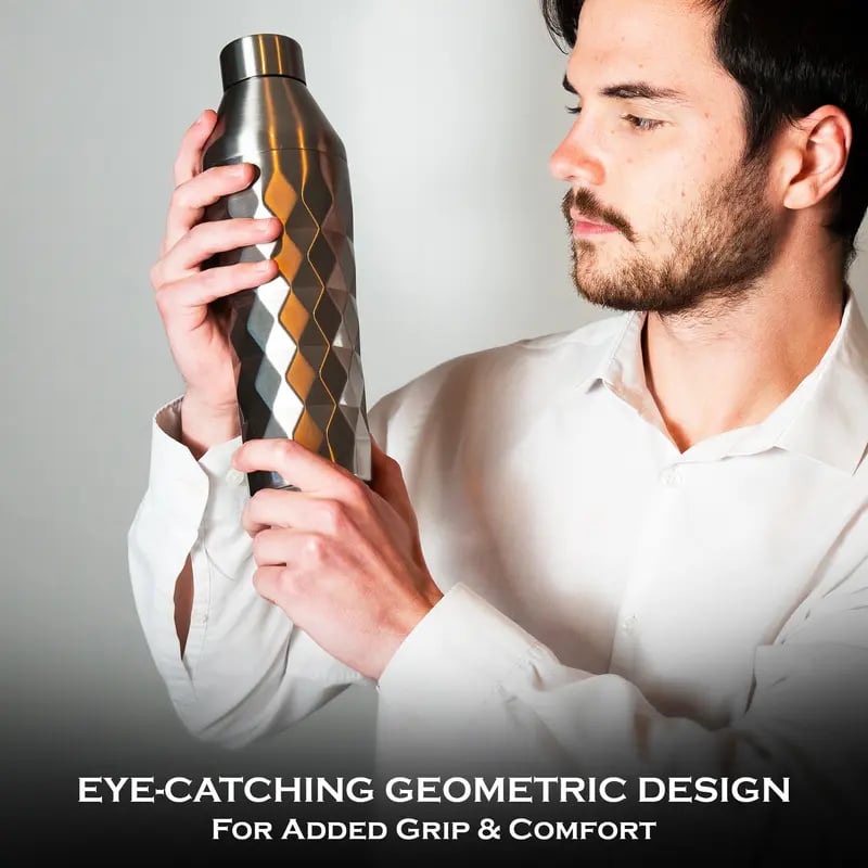 Our bold geometric grip design â¨Â instantly stands out and gives you a confident, slip-free holdâunlike the smooth, slippery metal tubes from the past. Whether youâre shaking a margarita, martini, or espresso martini, you get full control with zero awkward fumbling.
